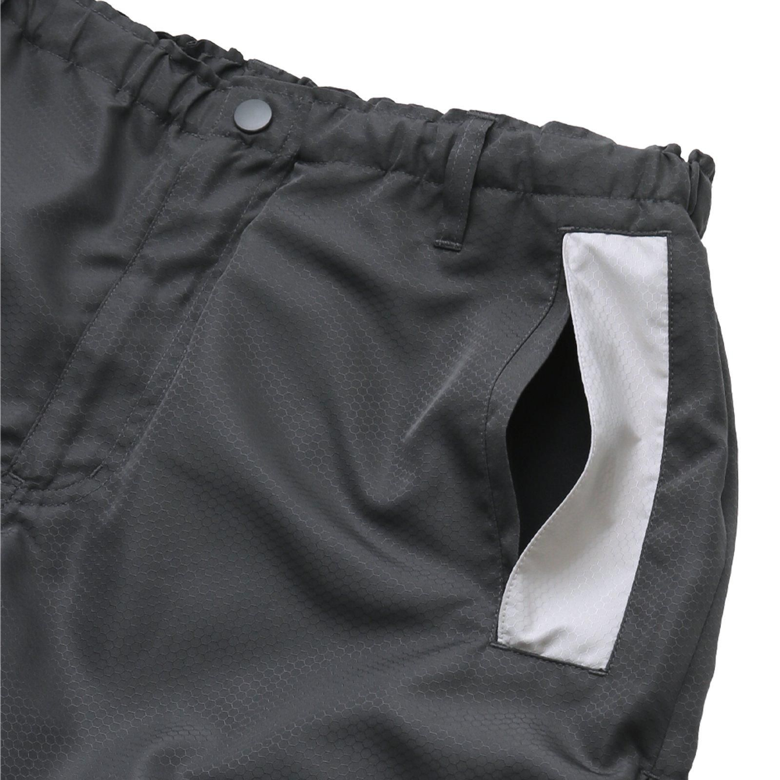 ワイドすぎず、裾部分の止水ジッパーの開閉によりシルエットに変化をつける事も可能。
