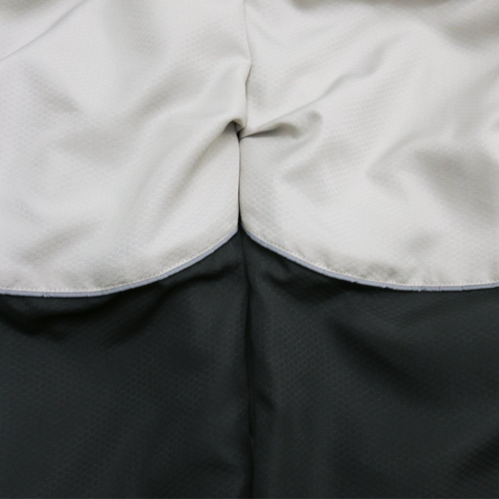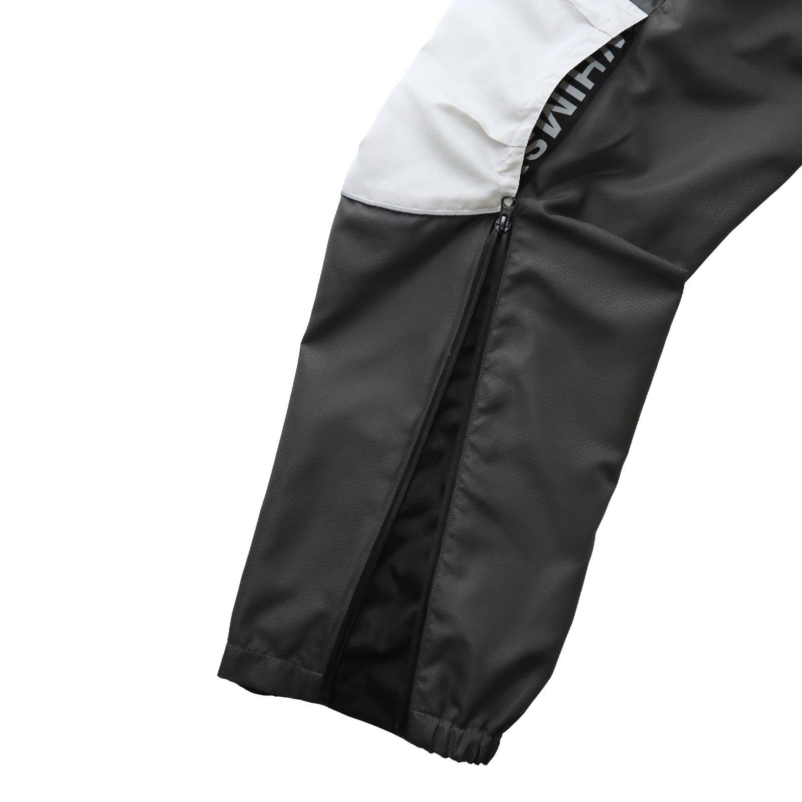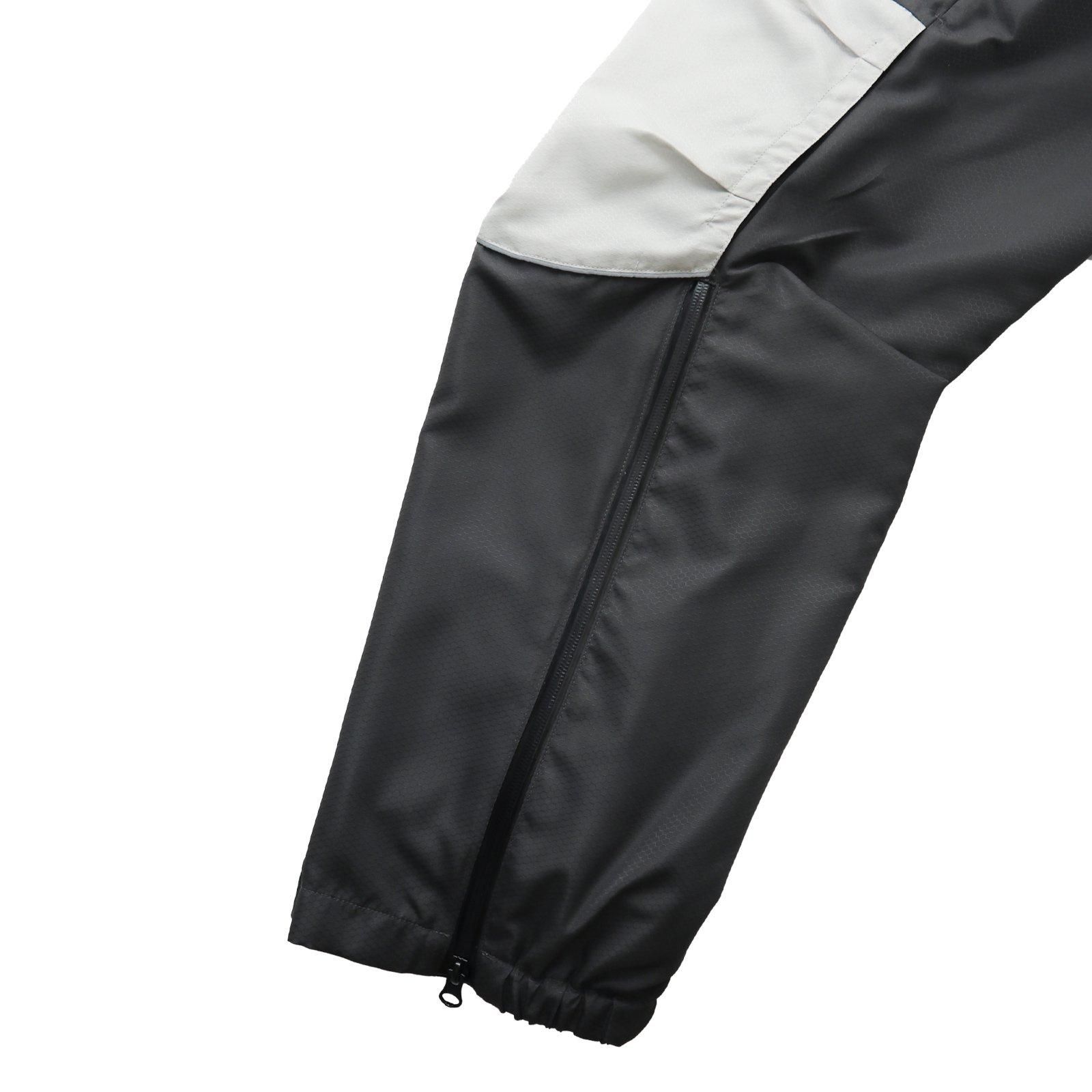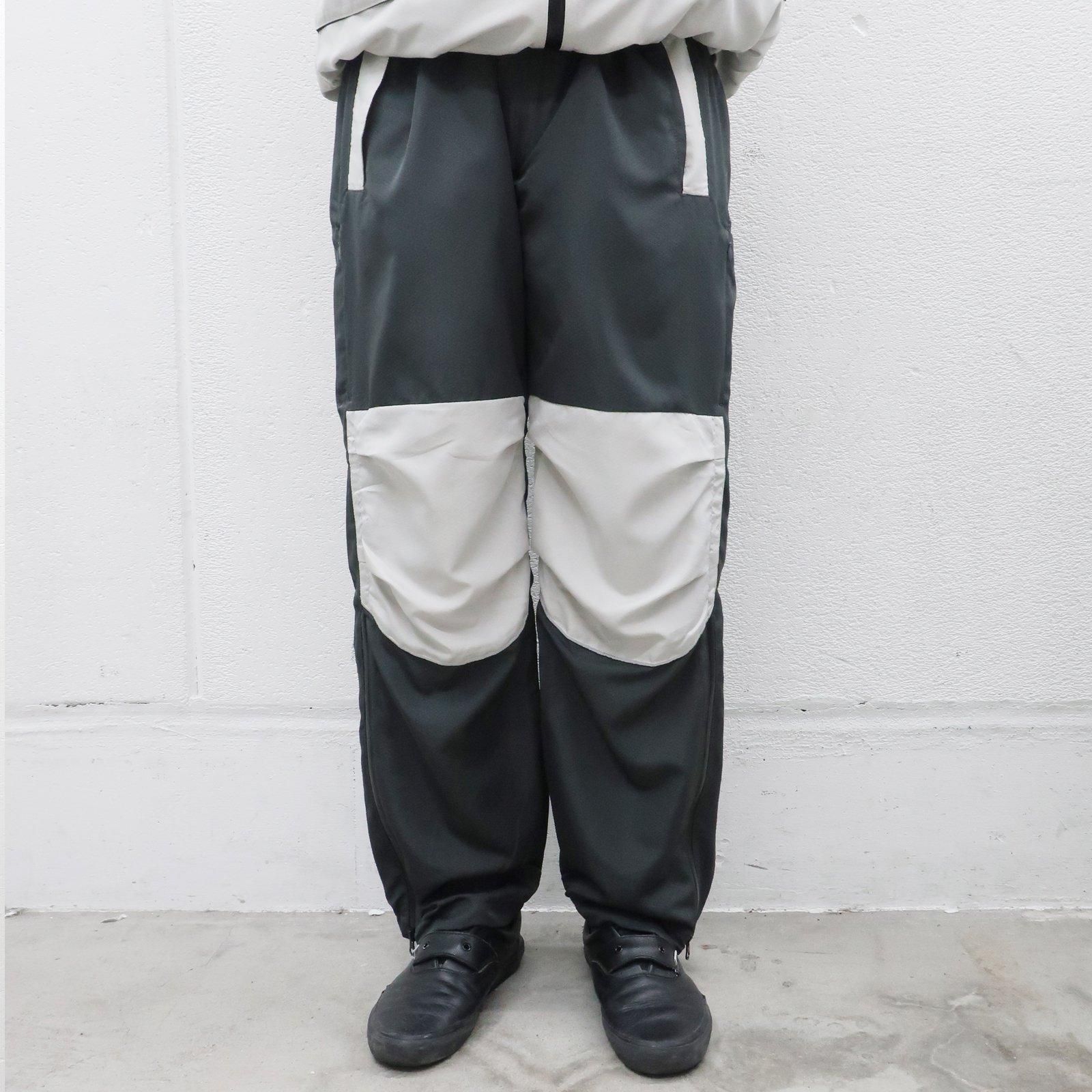 雪山を想定したポケットの配置、裾にかけて止水ジッパーなどトラックスーツとしての機能を保ちながら、裾のジッパーを開けるとフレアボトムになる様に設計した。