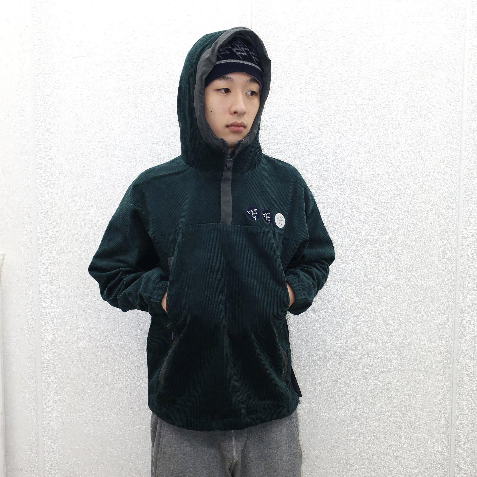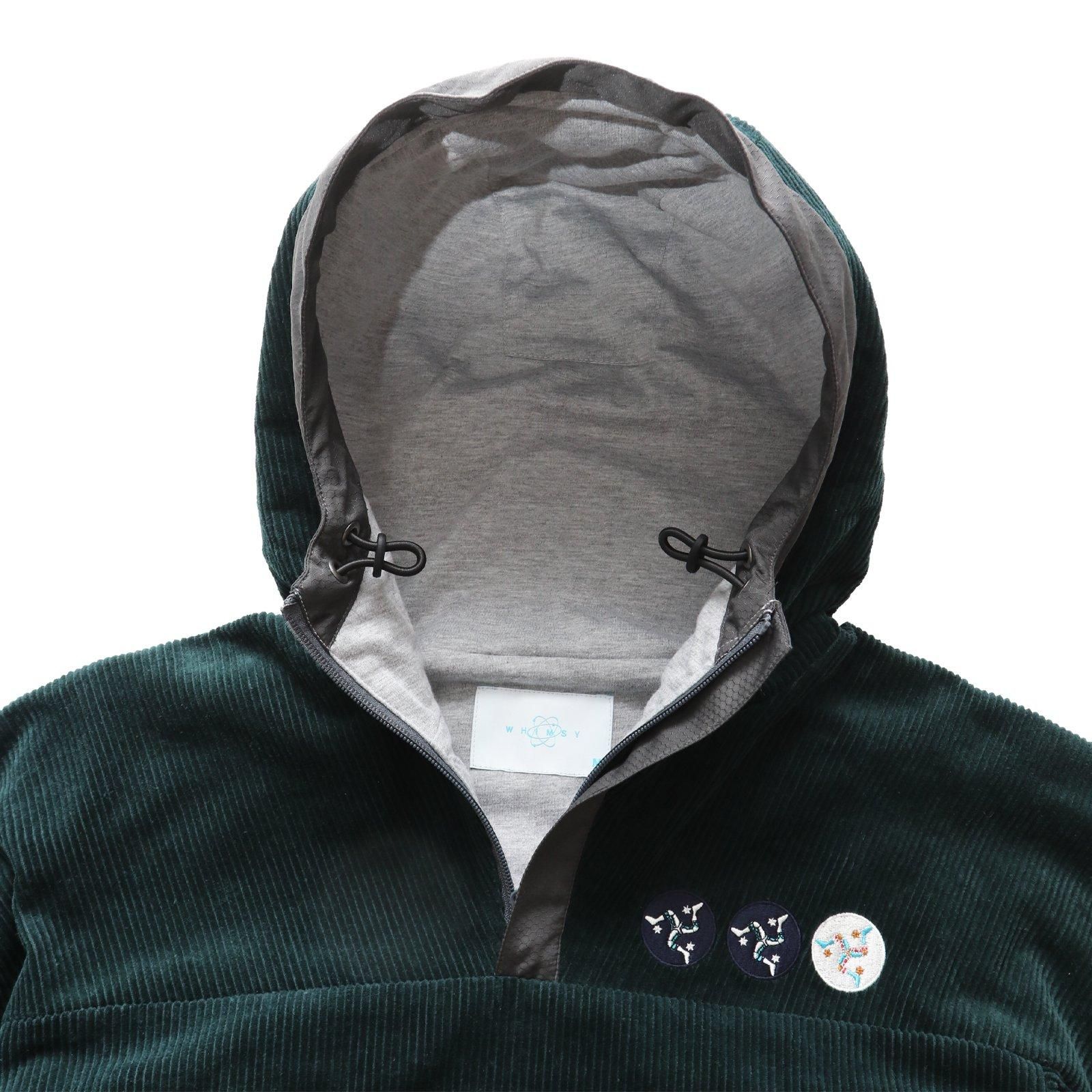 アノラック仕様のこのジャケットはハニカムのリップストップがバイカラーで配置されアクセントに。身ごろに大きく配置されたポケットは2階建て(ダブルマウス)になっており、機能としてだけではなくこのアウターの象徴的なデザインとして佇む。