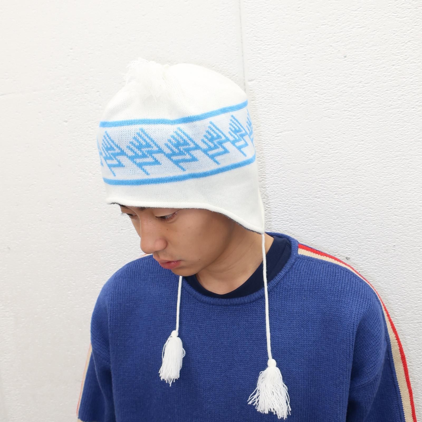 SKI BEANIEと名付けられたこのビーニー。厳しい冬の寒さから、頭から耳まで守ってくれる。スケーターはどこか懐かしい雰囲気を感じるはずだ。