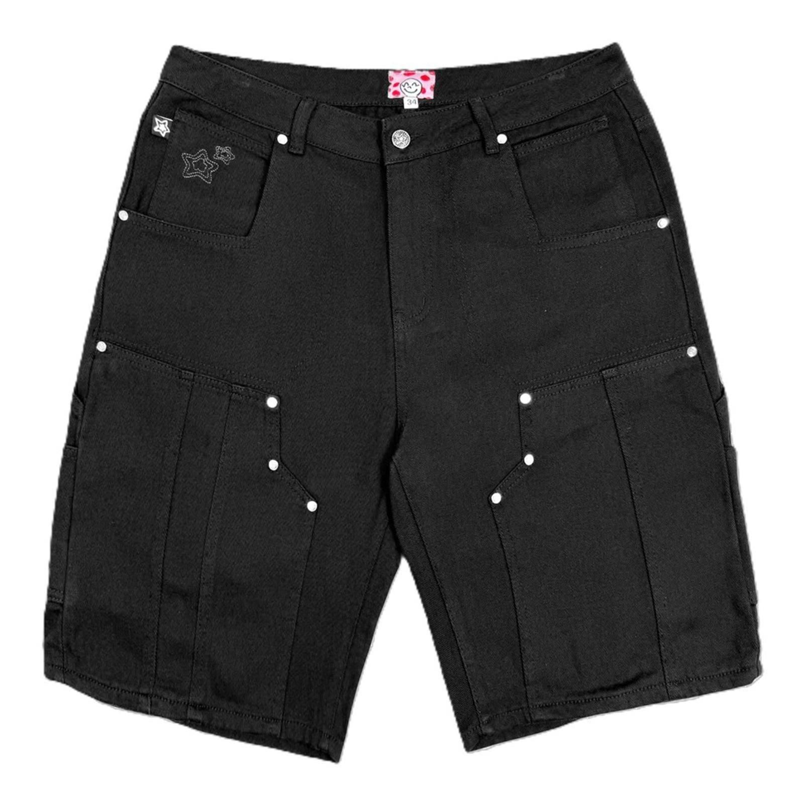 STAR TEAM / DOUBLE KNEE SEAM JEAN SHORT BLACK