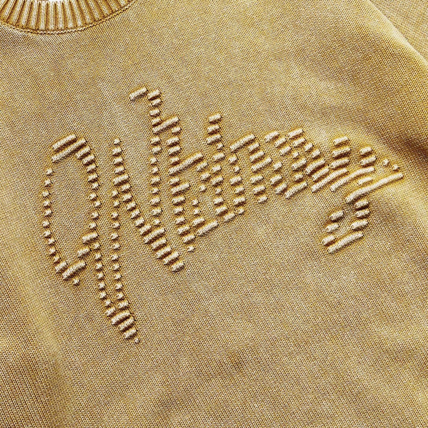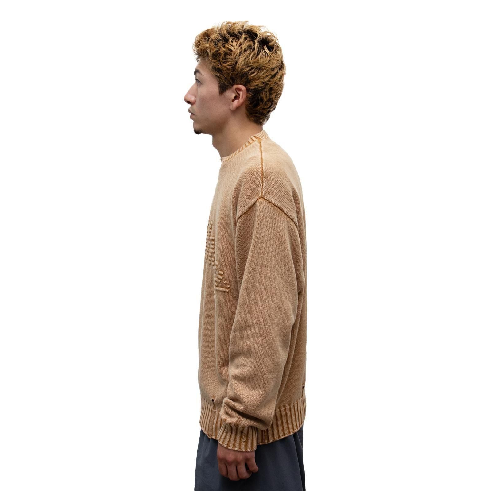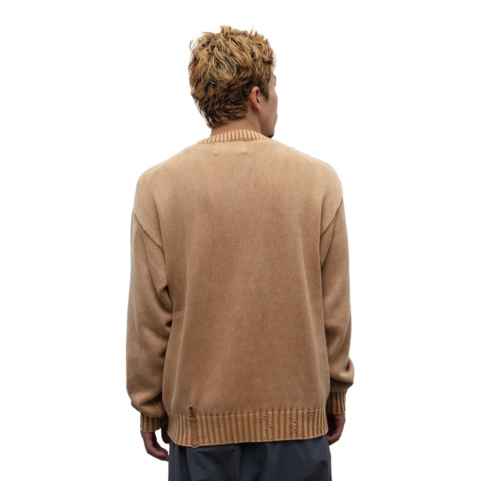 コットンニットを使用したセーターは全体にフェード加工を加えヴィンテージ感を纏った仕上がりに。