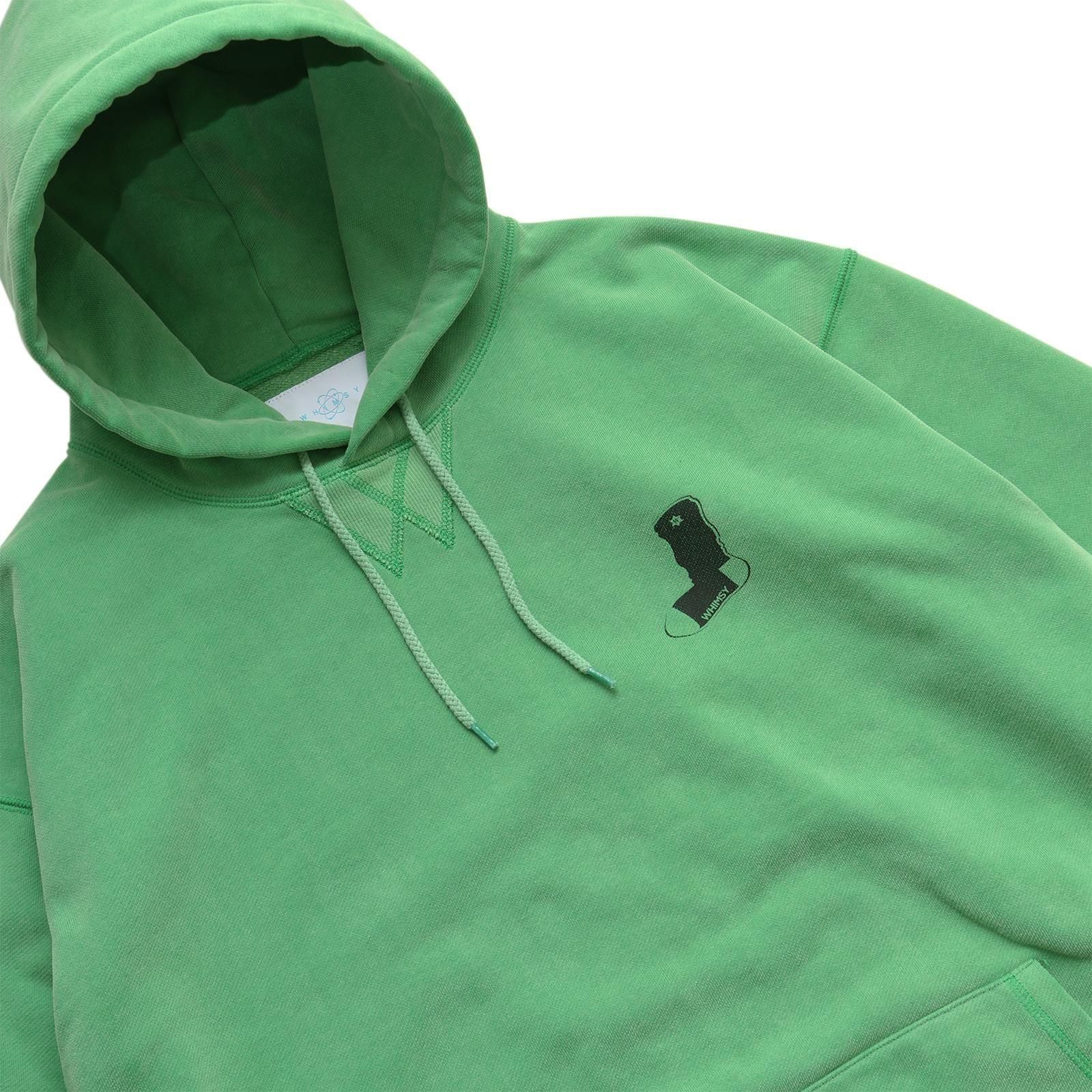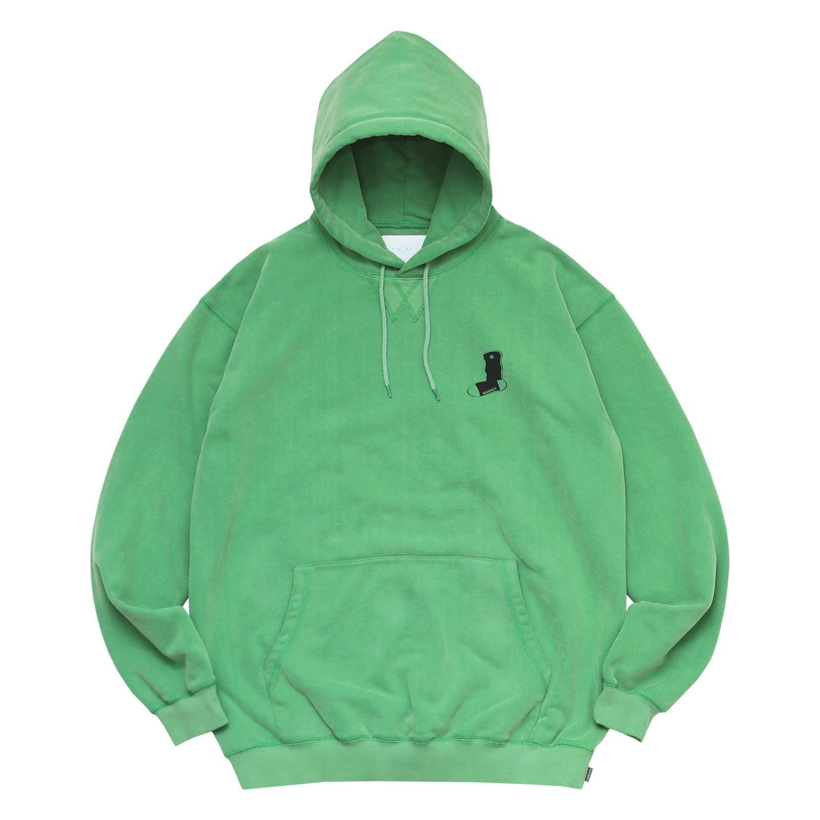 フェード加工を施したHOODIEは雰囲気抜群。左胸にトレードマークをプリント。