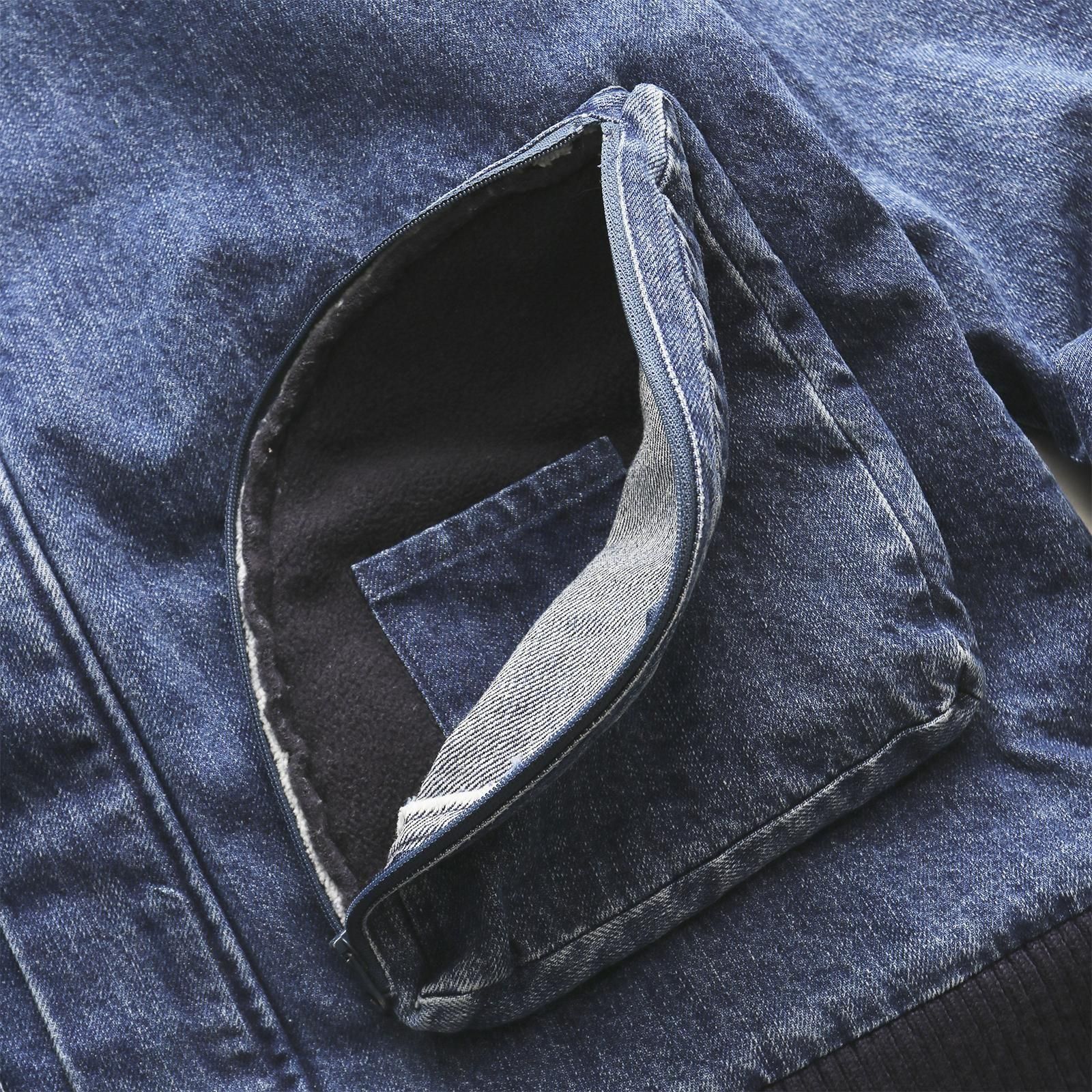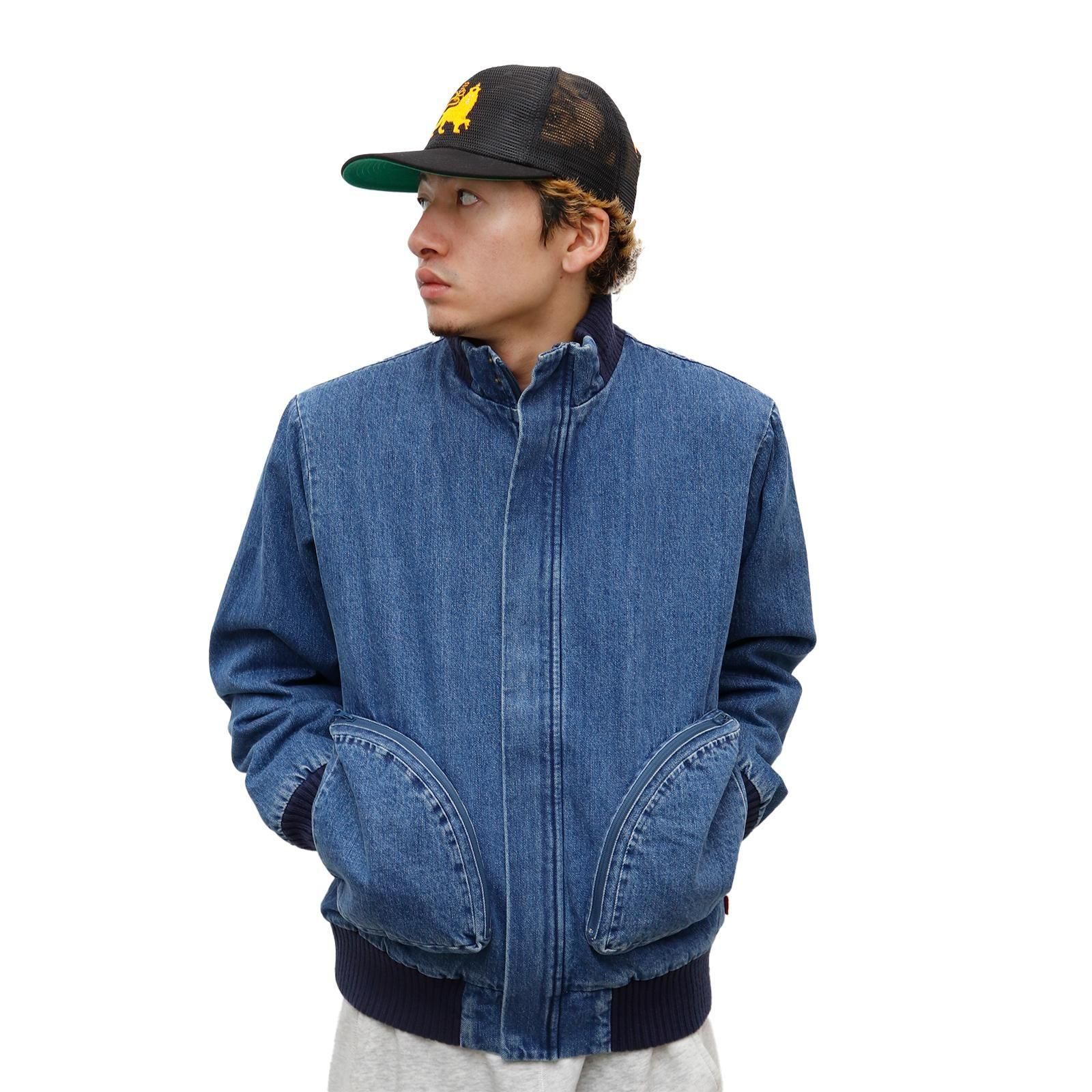 大きな立体ポケットが特徴的なジャケットはCDの収納ケースから着想を得て製作された。ハードウォッシュしたデニムにライナーはフリースを採用。