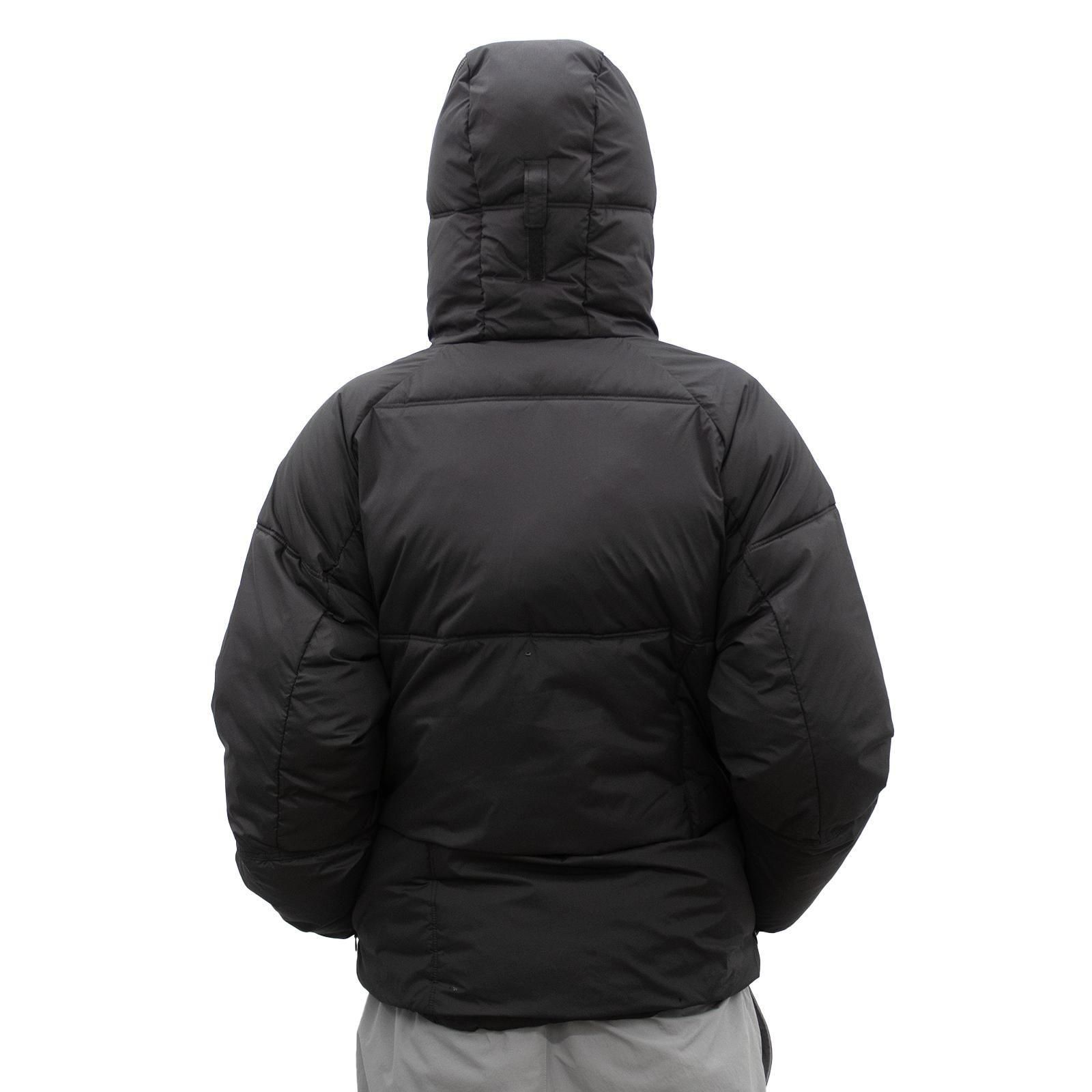 首元まで包み込むフードが全体を引き締め、横から見ても美しいシルエットを表現。