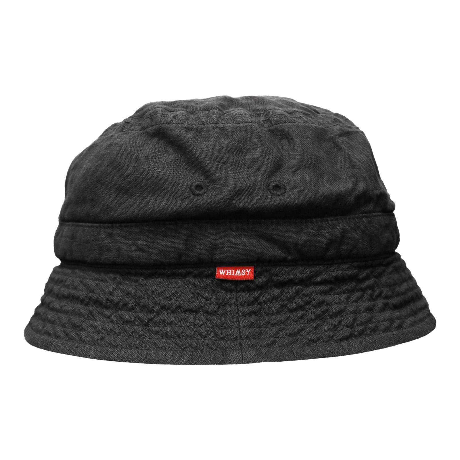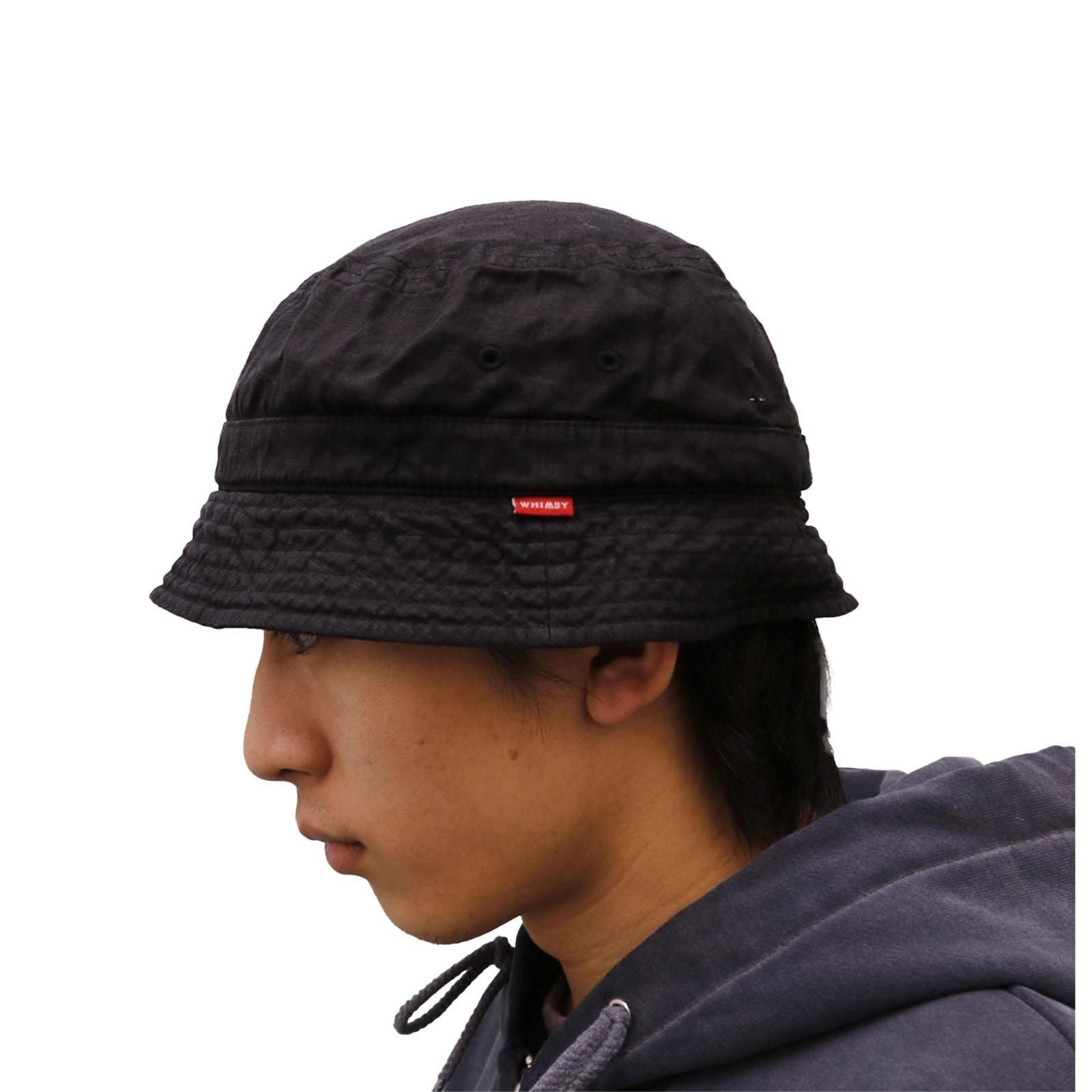 天然素材ヘンプを使用したバケットハットを製品染めしている。独特のシワ感が特徴的。今やWHIMSY夏の定番HAT。