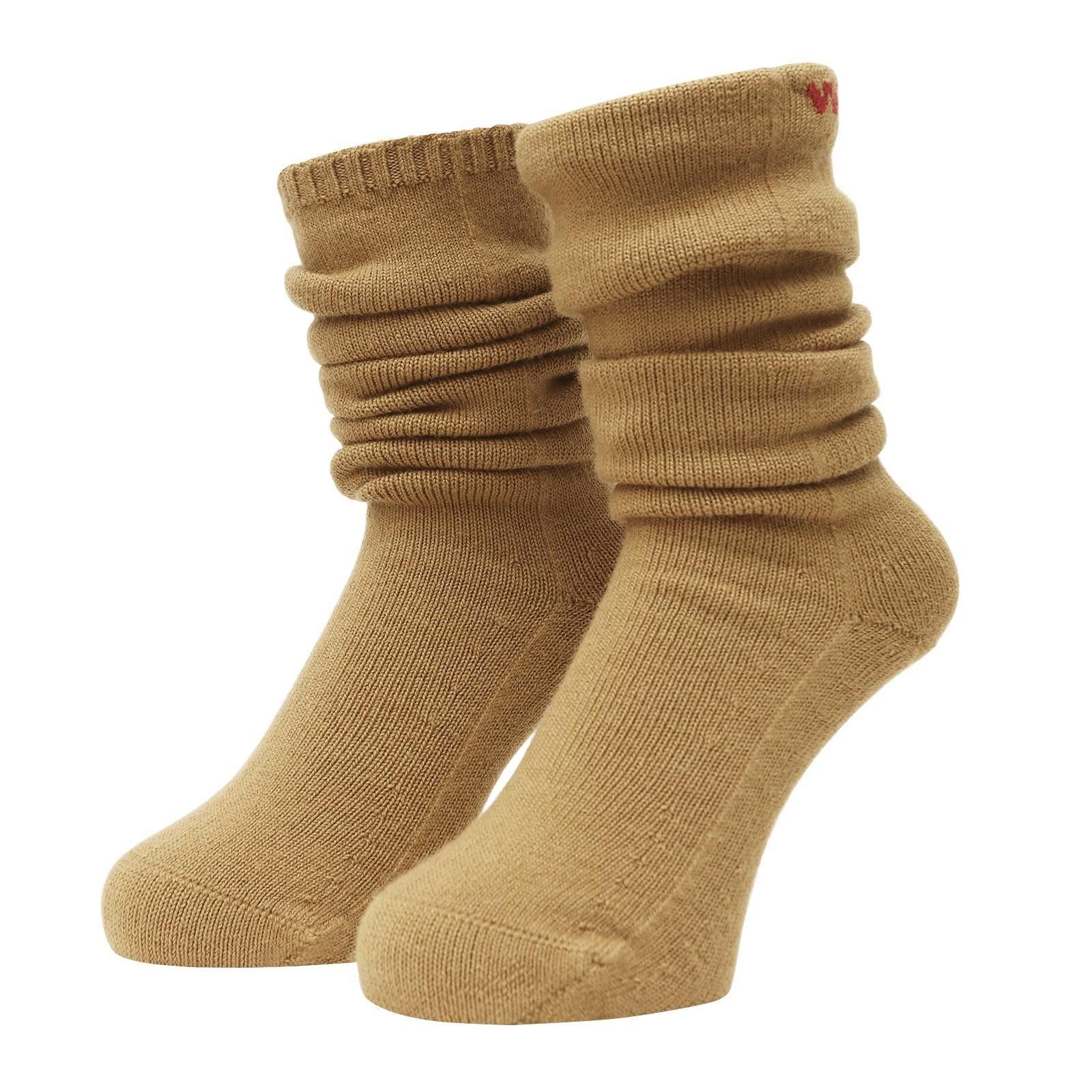 某映画の1シーンのソックスの履き方を目指して開発されたウールソックス。下げて履いた時に束になって溜まっているようにソックスをテーパードして編むという手法を採用した。